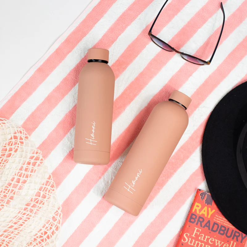 This vacuum-insulated drink bottle has a luxurious, matte finish and a strong, double-walled stainless steel design allowing you to take your hydration partner with you wherever you go. Our bottle is shatterproof, condensation-free, and has a sturdy screw-top lid, making it more than just a pretty accessory. Make it perfect by personalising your accessory to keep you hydrated everywhere